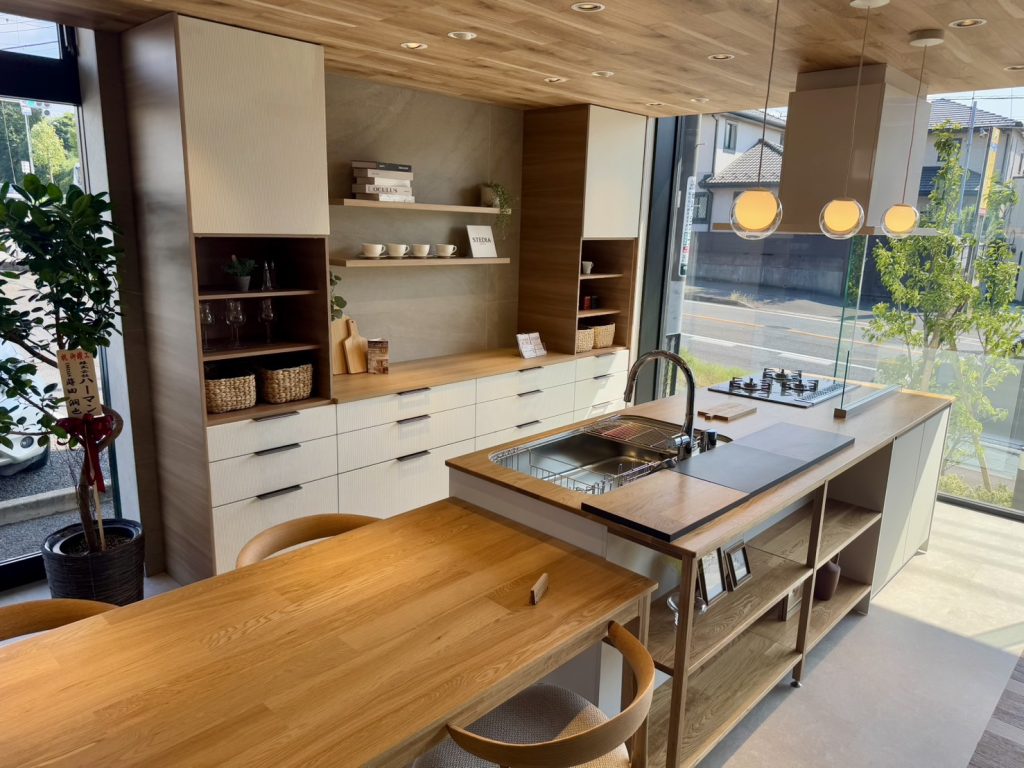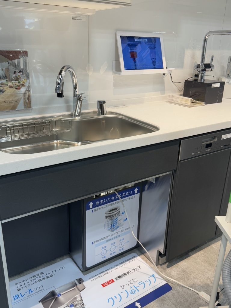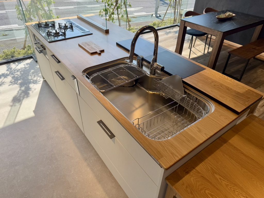 キッチンの他、洗面所と浴室も展示されておりますので、実物を見てみたい、実際に素材を触ってみたいなどご興味のある方はご案内致します。
